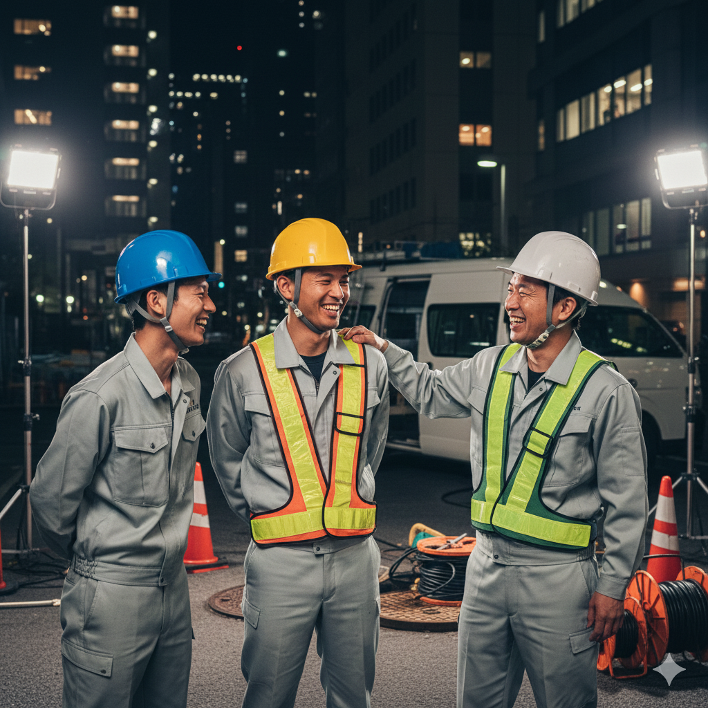 ・夜間に行うインフラ(電力線)工事の補助がメインです。