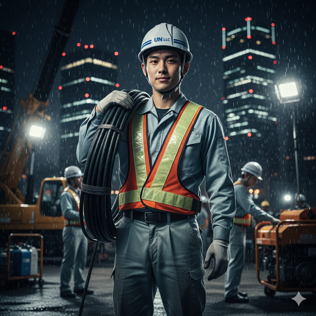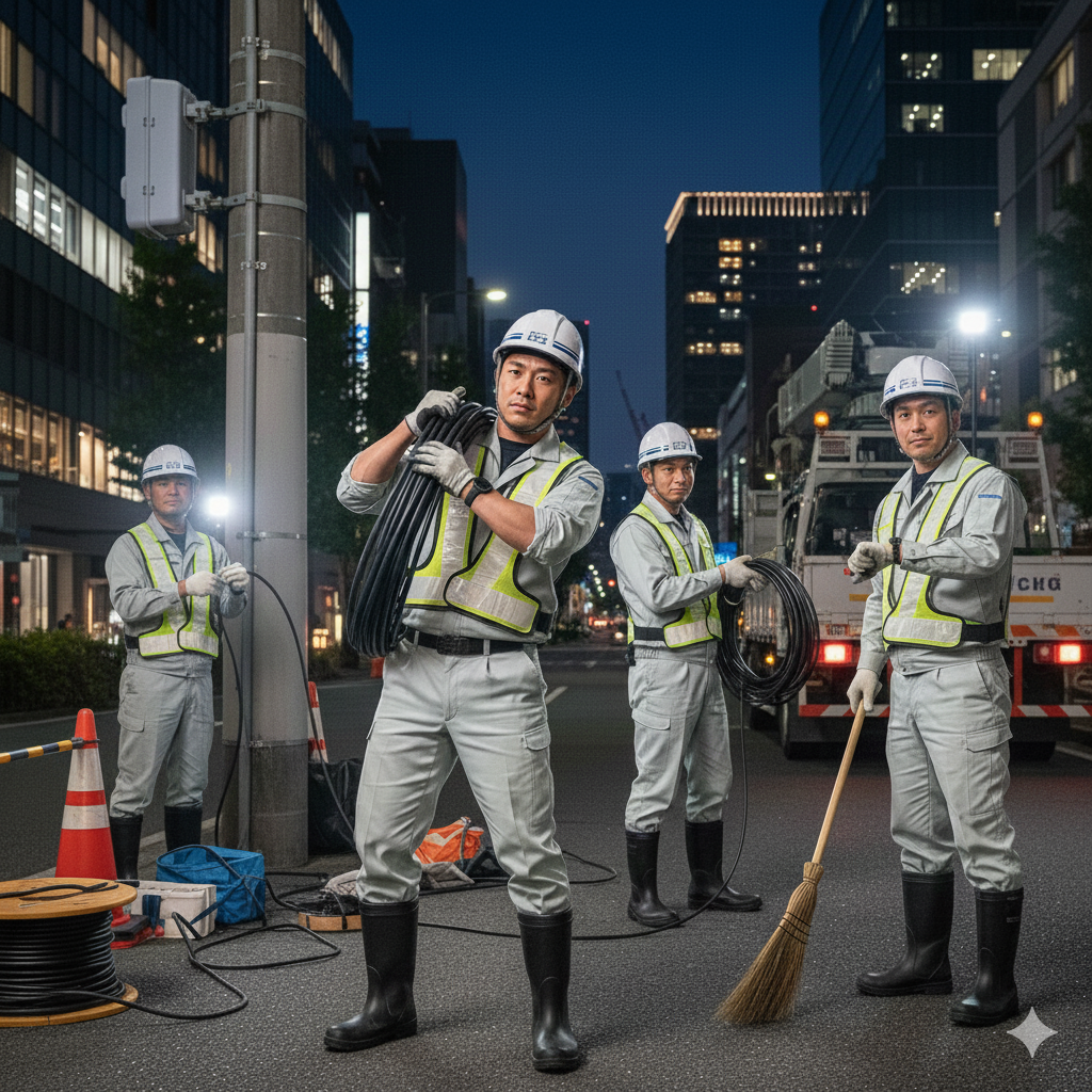 夜間に行うインフラ(電力線)工事の補助がメインです。